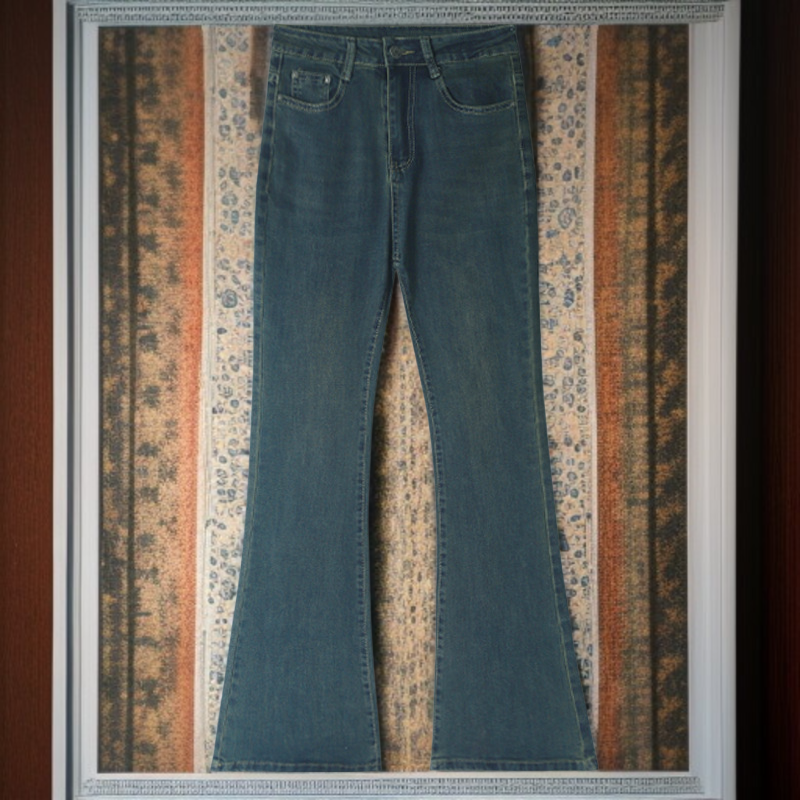 小さめハイウエストワイドジーンズ女性春春スリム細めマイクロフレアワイドパンツ